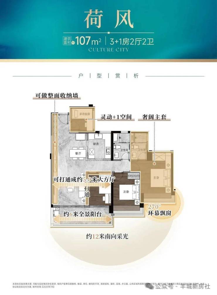全新三期【珺翎府】主推建面约107-181㎡四房,以“全南向+高拓空间+尊贵体验”为核心设计逻辑: