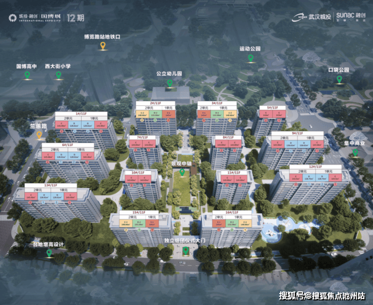城投融创国博城十二期即D12地块用地面积约10万方,总建面约29.7万方,住宅计容建面约20万方,包含14栋11层的洋房和12栋高层,其中首推的北区组团均为11层的纯洋房,包含1-16号楼。