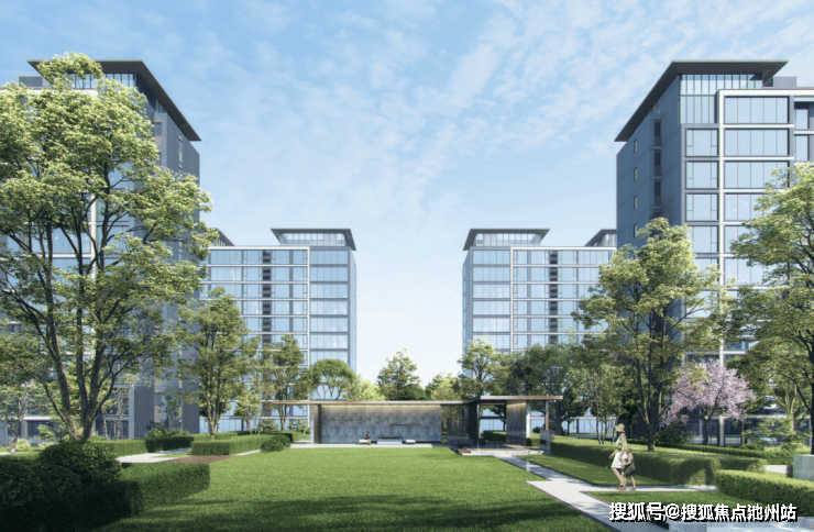 根据规划,该项目外立面区别于国博城前期地块及周边项目,十二期外立面采用大面积玻璃+局部真石漆的组合,利用横向线条与框体突出建筑的立体感,打造类公建化立面的效果。