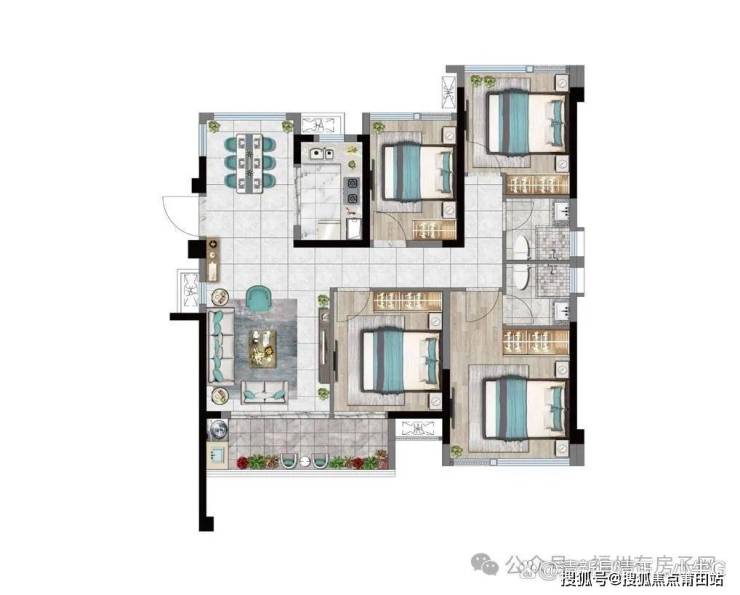 115㎡四房两厅两卫:南北通透,主卧套房设计,兼顾功能性与舒适性。
