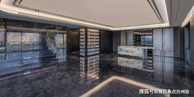 穿过电梯前厅,来到 “月光宝盒” 玄关照壁处。这里巧妙融合了山西大院影壁文化,选用珍贵的天然玉石与晶莹剔透的水晶玻璃砖,通过精湛工艺打造,自地面到天花一气呵成,形成一道极具艺术感染力的屏风。它不仅在视觉上带来震撼的美感,更承载着家宅兴旺、凝神转运的美好寓意,让每一次归家都充满仪式感与文化底蕴。