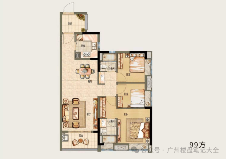 <户型B,两房两厅两卫,建面约99㎡>