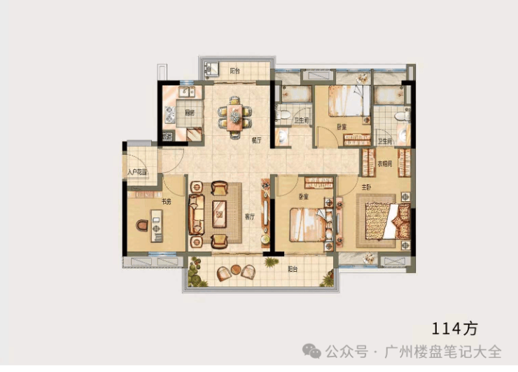<户型D,四房两厅两卫,建面约114㎡>