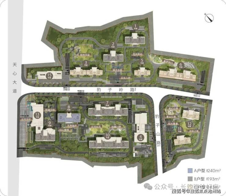 ②区域内拥有 5 大市政公园,是主城区市政公园落地密度最高,园林维护最好的区域。项目往东即可到达海棠公园,西侧一路之隔是天心滨江公园,让您于闹中取静,享受城市绿洲的超脱感。