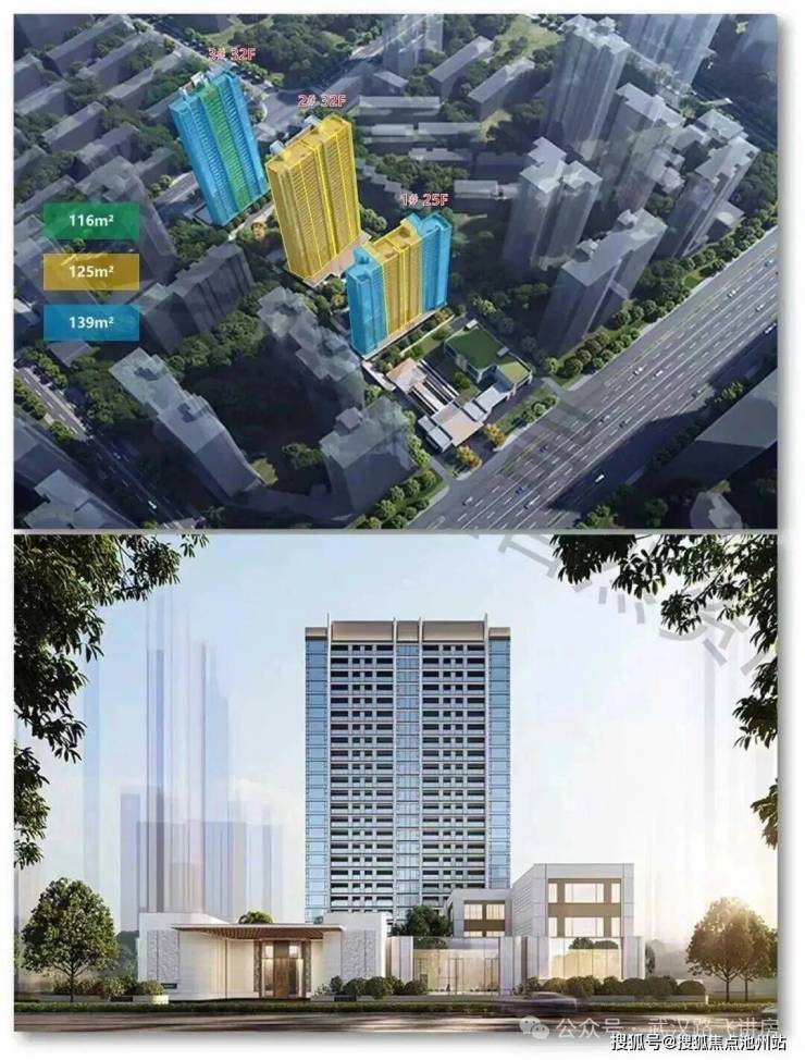 项目共3栋楼,沿友谊大道垂直一字排开,南侧配建商铺及一所幼儿园。