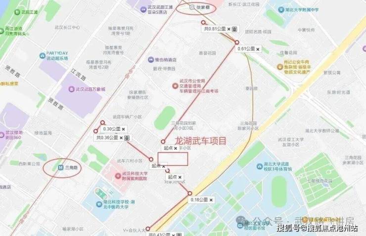 地铁:项目周边有5号线、7号线双地铁,距离5号线三角路站约360米,距离7号线湖北大学站约430米,距离7号线徐家棚站约800米。