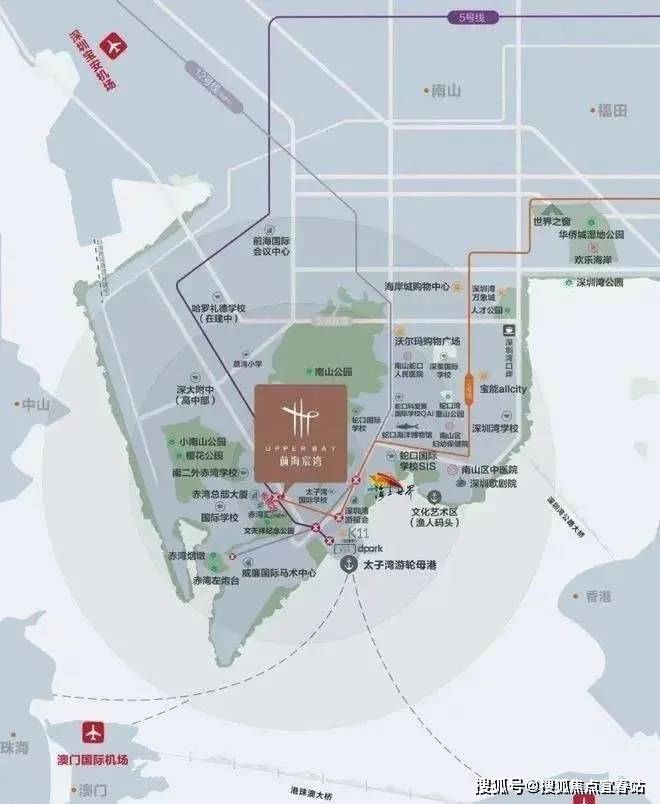 ▫航空港口:经沿江高速速达宝安机场、经蛇口港便捷通达澳门和香港、经深圳湾口岸抵达香港中环