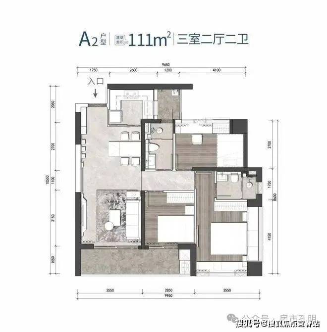 A户型 建筑面积约109-111㎡ 3房2厅2卫