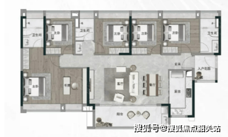 143㎡四房:豪华主套设计,横厅+外接大阳台,气派非凡。