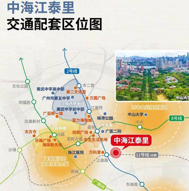 交通畅达:交通方面是中海江泰里的一大亮点。它拥有双地铁交汇的优势,江泰路地铁站直线距离项目约 150 米,步行仅 200 米即可到达,该站是 2 号线和 11 号线的交汇站点。2 号线作为连接海珠、白云、越秀的大动脉,能够直达海珠广场、公园前、火车站等重要地点;11 号线则是贯通市区的大环线,一路贯通琶洲、金融城、天河北等地区。此外,项目周边 2 公里范围内还覆盖了广佛线燕岗站、8 号线昌岗站,通过地铁出行,7 站可至广州南站、7 站可到琶洲,经换乘 3 号线、1 号线、8 号线,3 站可至中大、7 站可达珠江新城、8 站能到东山口。自驾方面,有江南大道、工业大道、广州大道、内环线、环城高速 5 大主干道串联主城,无论是坐享江南大道商圈,还是经江燕路接驳工业大道畅达太古仓、同福西及沙园,或者是经新滘西路接驳广州大道便捷通达珠江新城等,都十分便捷,通勤效率与出行体验都得到了双重提升。🎯 内部置业顾问VIP解答,独家优惠仅限来电客户!
