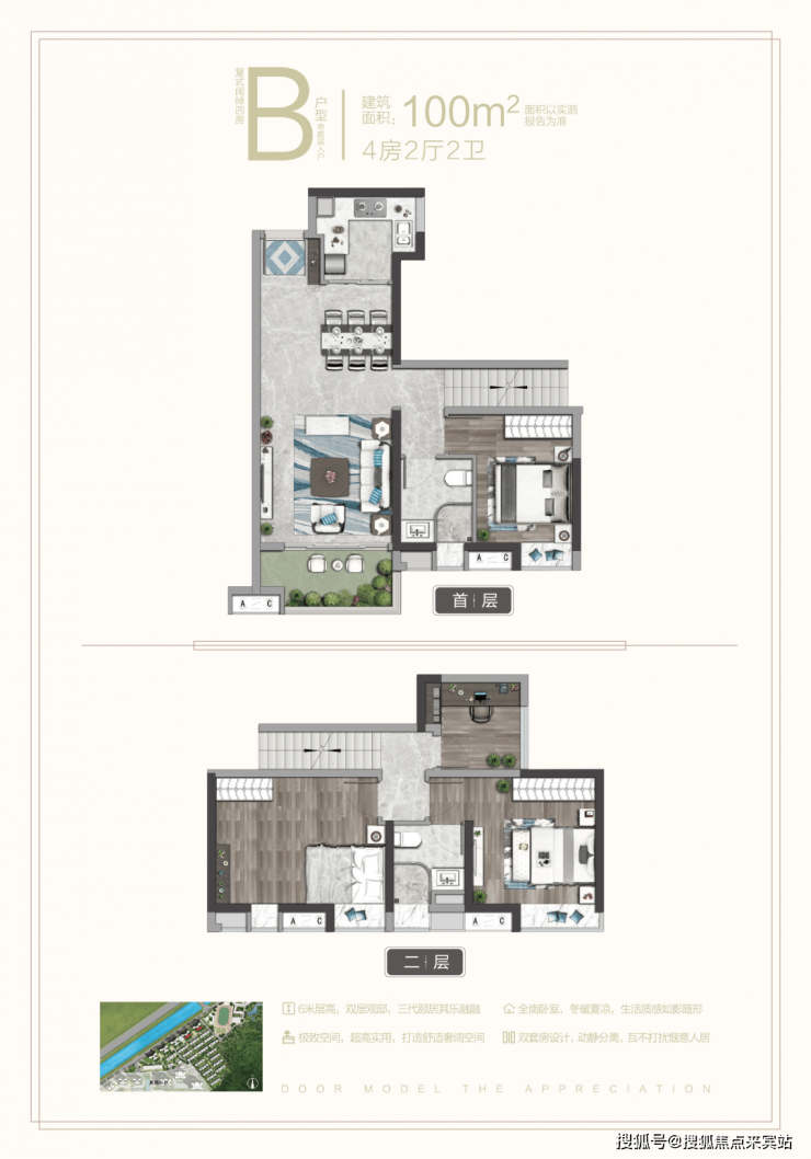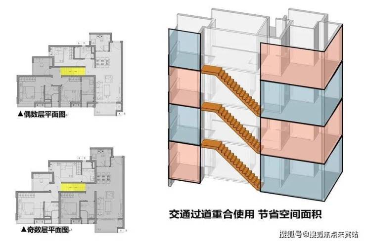 其一,是实用率接近100%,一套100㎡的单位,相当于一般平层120㎡的实用空间。