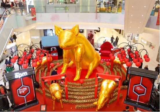 从霞公府往东北方向步行10分钟即可到达北京apm(北京市东城区王府井大街138号)。从1月上旬到2月底,巨型艺术猪展览在北京apm一层北区中庭举办。巨型艺术猪的创作者Amanda Parer是澳洲著名艺术家,其巨型白兔艺术装置曾在80多个城市、超过40个国际艺术节巡回展出,全球超过六百万人次观赏。