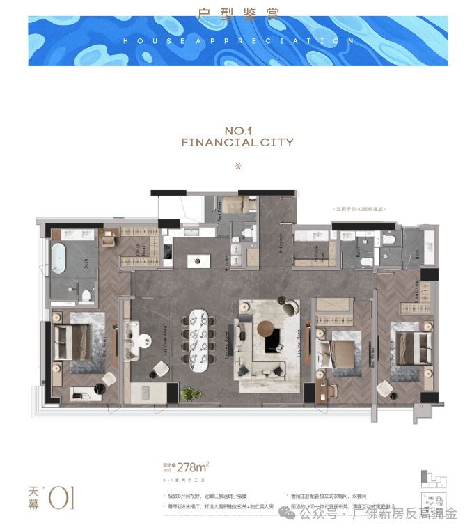 金融城壹号项目分为三个地块,最早开发的一期地块(11-14栋)所有产品已经基本售罄,一期仅14栋251㎡还有一套现楼江景单位可售;现在项目主要在售二期地块(3-10栋)产品,二期产品涵盖写字楼、酒店公寓、LOFT复式公寓、江景大平层和江景叠墅;三期地块现在则还未开发建设。