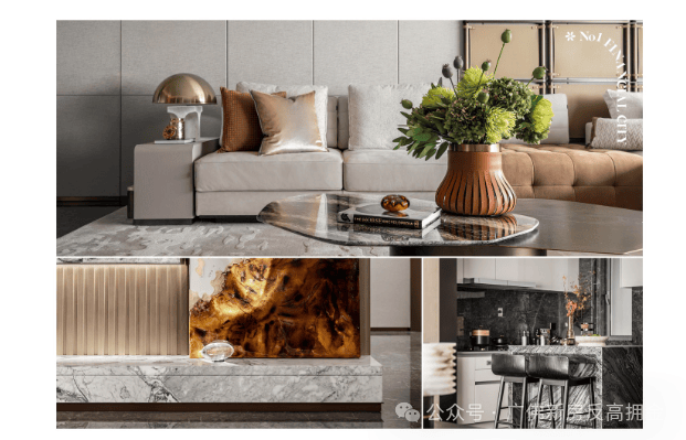 约9米高朗阔入户大堂,汲取明阔开朗的岭南建筑气质,奢雅的仿古铜色大门之外,立面色调以浅色石材中性色为主,摒弃多余而浮夸的修饰,将广府气韵浓缩其中,整体呈现出古今相宜的尊贵,兼顾艺术感与审美细节。