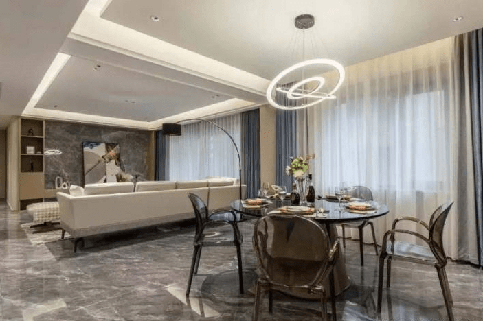 188㎡户型样板房,空间核心区是社交宴请、家庭团聚的大长厅,南北都拥有大尺度的阔景阳台。阳