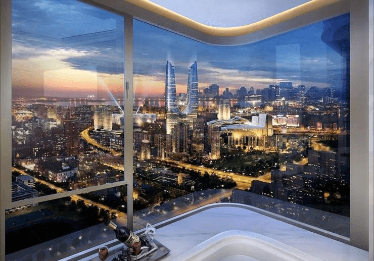 京港国际全新精装样板房分别为188㎡、239㎡,层高约3.2米,南向双阳台、空中花园、南北通透等优势,居住体验远