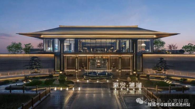 建筑立面以观澜屏玻璃立面辉映江水波澜与天际浩瀚,香槟金格栅是鎏金显贵,黄金缕线条流畅灵动,新中式韵律之美点缀CBD天际线。