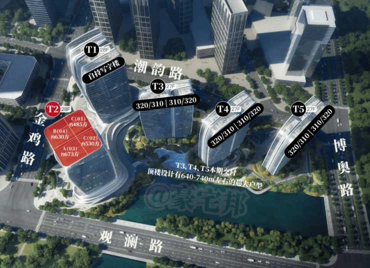 项目占地4.4万方,总建筑面积约33万方,其中地上建筑面积22万方,项目地上最高28层,地下3层,共规划5幢塔楼,由写字楼、大平层公馆和商业三大业态组成。