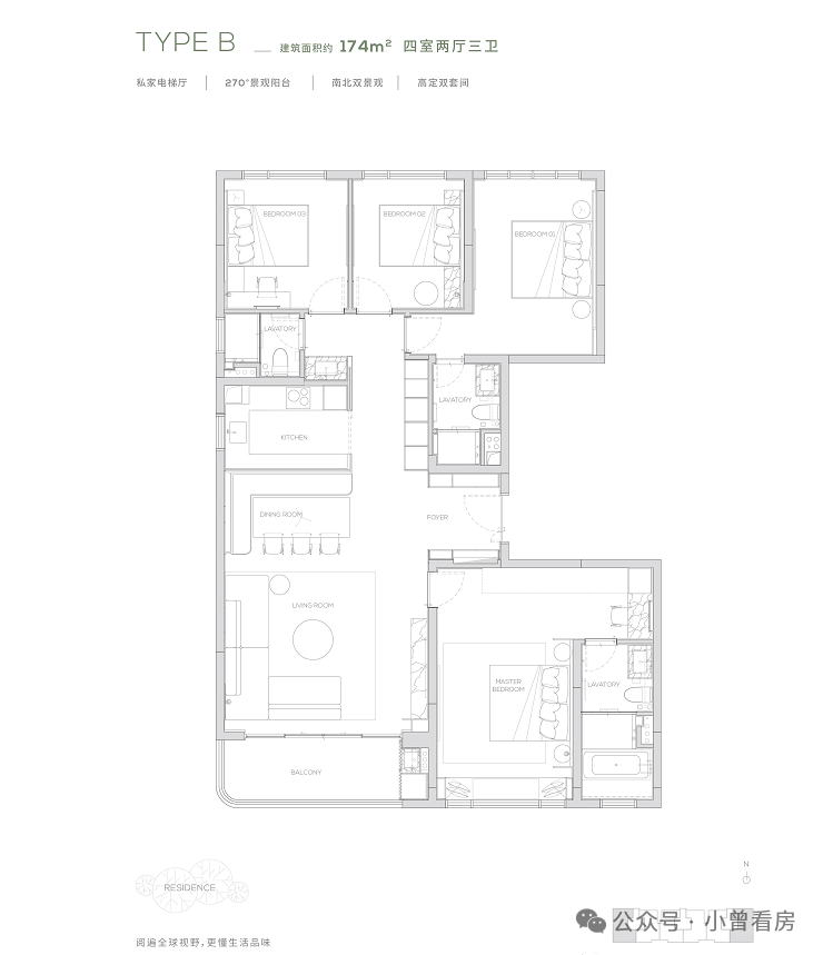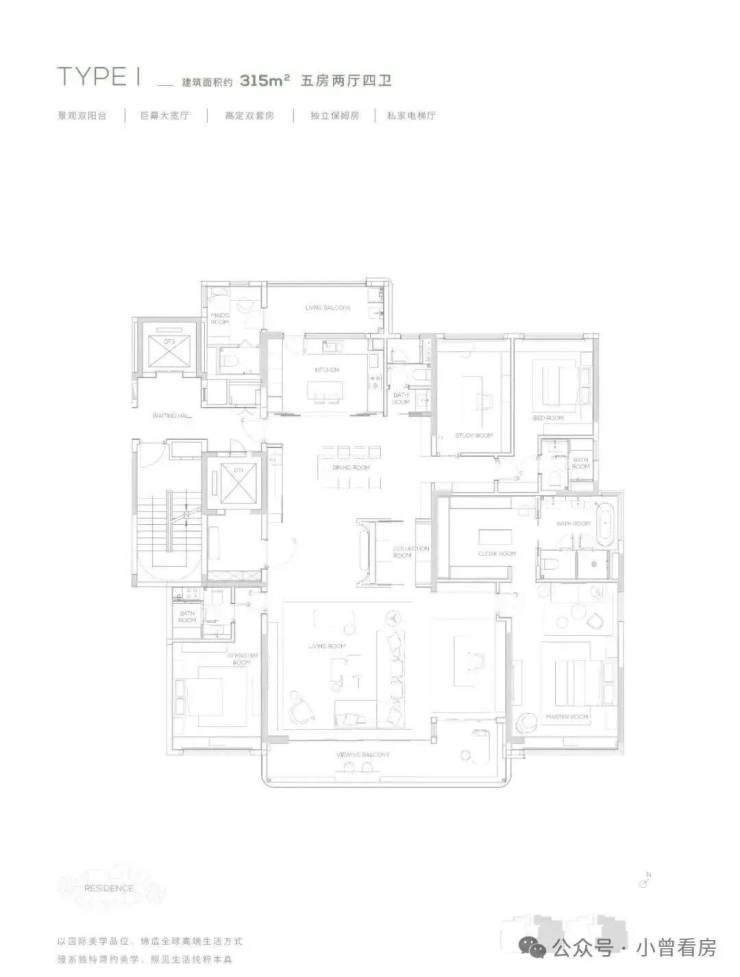 【315㎡户型】南北双阳台-独立保姆房-巨幕大宽厅-私家电梯厅