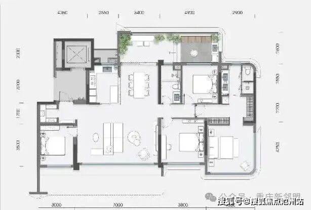 户型:建面125㎡+露台22㎡ 四房二厅两卫
