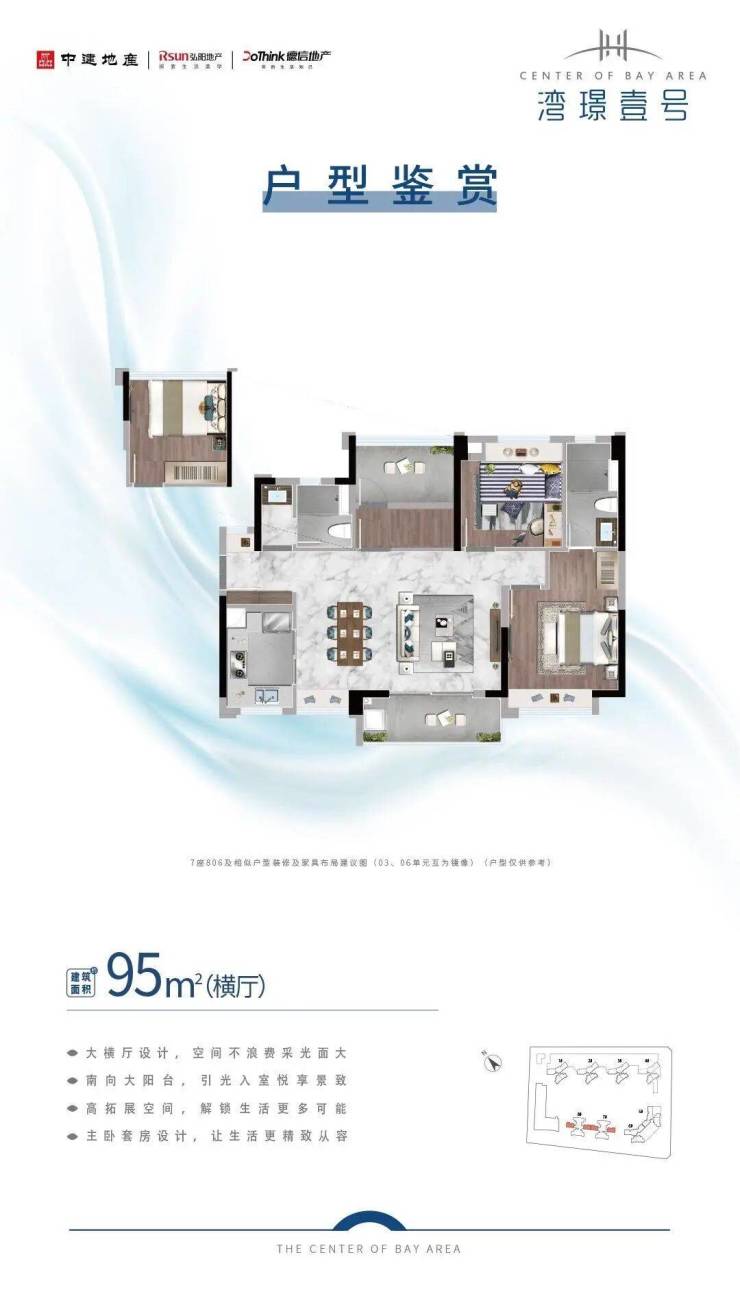 中建弘阳德信·湾璟壹号位于湾区之眼——广州南沙万顷沙,占地约3.2万㎡,匠造8栋纯高层现代风格精奢科技华宅,两梯四户,是片区内难得高舒适社区。