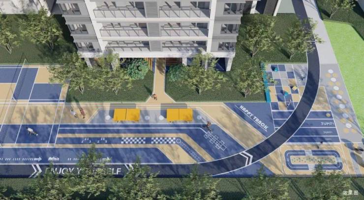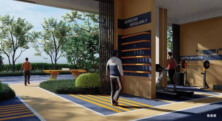 项目采用围合式建筑布局,打造难得的全龄中心大庭院,创造一环(健康跑道)一轴(中央花园景观中轴)五区(入口广场、草坪会客厅、亲子泳池、儿童空间、架空层泛会所)园林场景,“运动、玩乐、趣味、共享”尽皆满足,真正实现一家老少在这里各得其乐。