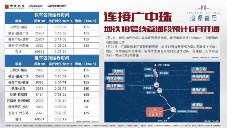 广州地铁18号线,现首通段已全线通车,设计时速超160km,远快于地铁4号线(最高运行时速120km);