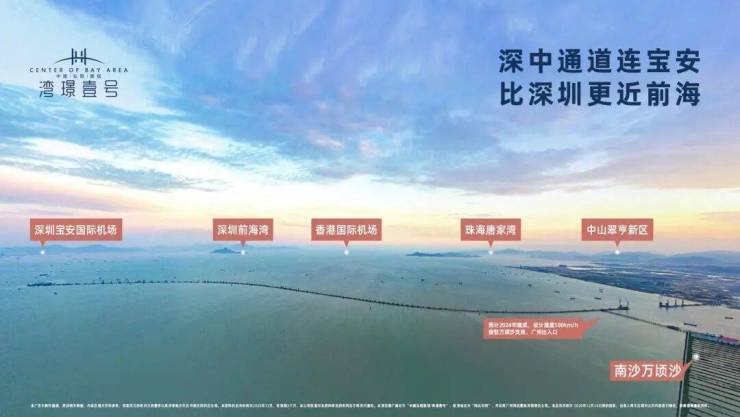 深中通道预计2024年建成通车,加上地铁18号线开通,届时项目约30分钟可畅达广州和深圳两个一线城市,全国稀有