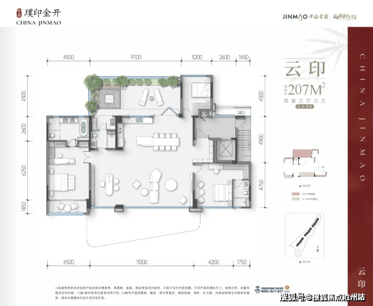 项目倾力打造建面约207㎡的云印户型及240㎡的户型,精心营造东方高端定制生活的典范。每一户均为独立天地,每一层犹如私人世界,设有入户私院、全景卧室花院以及全面屏社交庭院,形成三大庭院体系,完美诠释合院的经典精神。每户配置空中花园,配备约40㎡的露台,于平层空间中实现对庭院生活的向往与追求。
