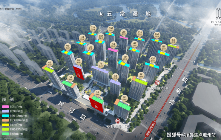 项目落址杭州余杭区高教路与绿汀路交汇之处,总用地面积约 82657㎡,总建筑面积约 283529㎡,容积率 2.4,绿地率 35%,规划打造 16-23 层的高层住区。社区内设置 4.3 米挑高景观架空层,住宅标准层高达到 3-3.1 米。