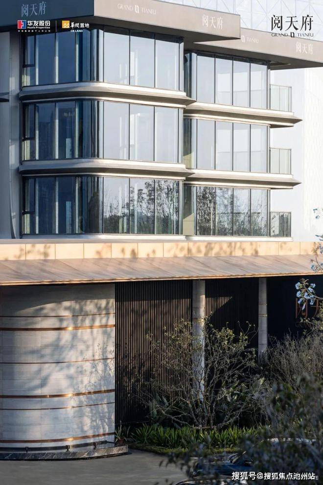 建造工艺—阅天府使用定制LOW-E玻璃270°曲面环绕+一体成型的毫米级工艺铝板大幅提高玻墙比,高级感的审美、非常规的用材、非标准的高难度工艺,让建筑历久弥新,也让阅天府具备穿越周期的美学价值。