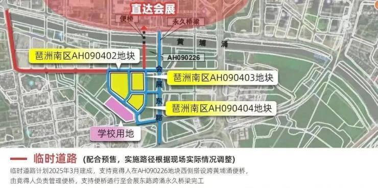 一是临时道路,会搭设黄埔涌便桥,连接琶洲中区,计划2025年约一季度建成;