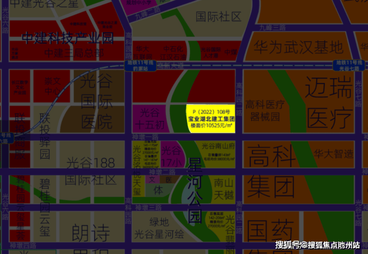 因此,在2022年12月16日的光谷土拍中,P(2022)108这宗绝版地块,经历了9次竞拍,竞得总价11.999亿元,溢价率约3.45%,楼面价约10525元/㎡,最终幸运的落到了实力强劲的宝业集团手中,瞬间引爆整个光谷地产圈!