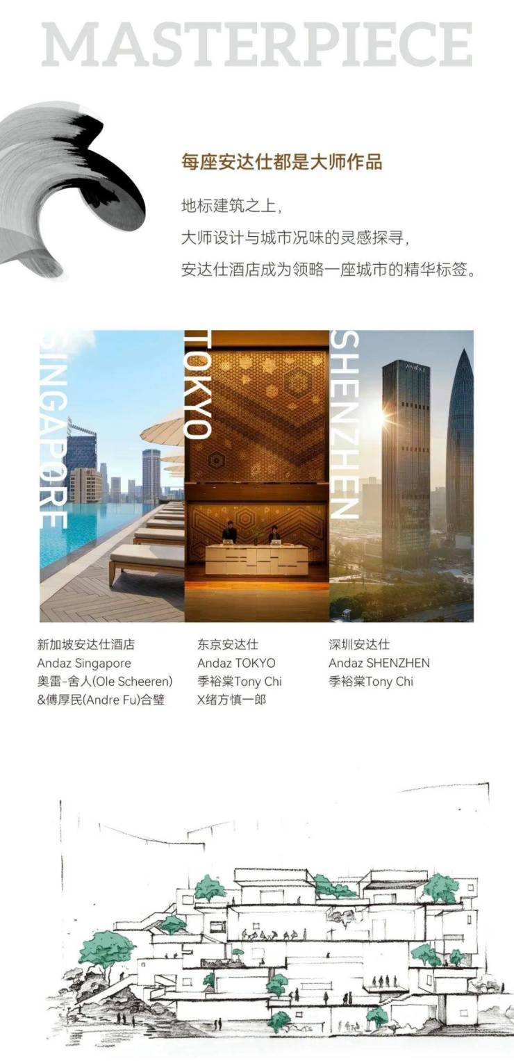 潮流综合体集合:由T1、T2二幢大平层搭配T3整幢超五星级酒店andaz(安达仕)T4自持写字楼以及二个时尚商业盒子
