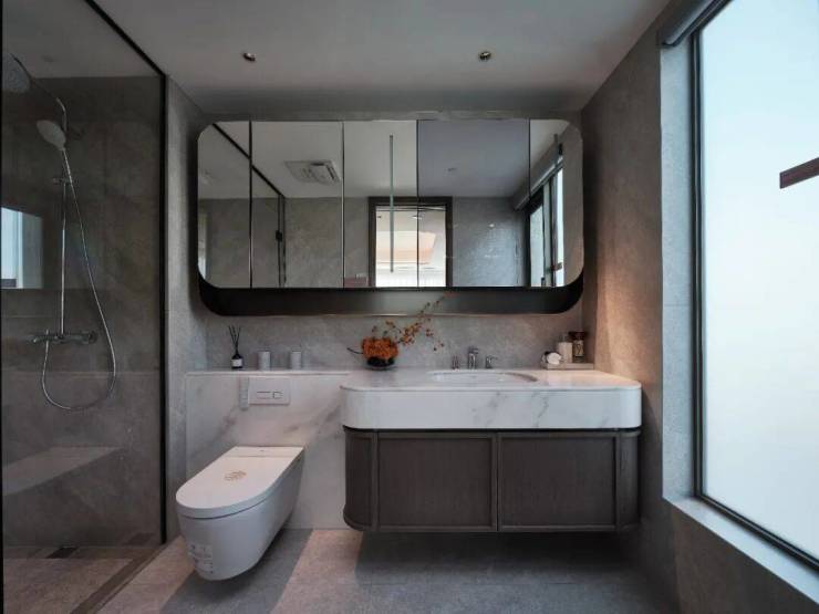 地面瓷砖铺设紧扣简约精髓,挑选纯色哑光瓷砖,色泽统一、质感细腻,契合空间纯净调性。填缝选用同色系环氧彩砂,细腻填充、压实刮平,固化后无缝衔接,尽显利落简洁,凸显现代高效、精致的生活格调。