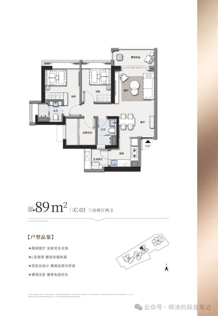 双阳台设计,L形厨房布局,兼具实用与舒适