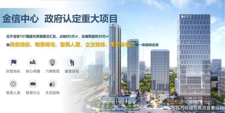 金信中心由深圳市金信联投资有限公司打造,坐落于宝安区松岗街道广深公路与金芙路交汇处东北侧,占地面积约 2.2 万㎡,总建面约 20 万㎡ 。项目业态多元,涵盖生态办公、智美人居、瞰景阔宅、独栋总部与配套商业。