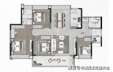 143㎡四房:豪华主套设计,横厅+外接大阳台,气派非凡。