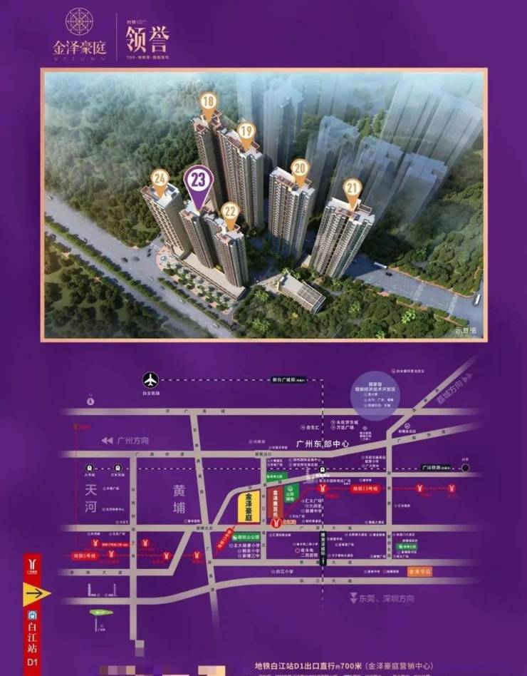 项目直线距离13号线白江地铁站仅700米,步行8分钟可达,由白江站乘坐13号线,2站黄埔,8站天河
