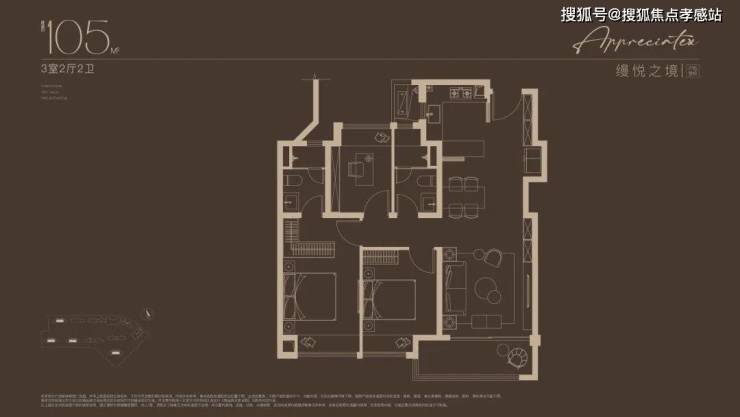 建面约105㎡3房户型,总价400万级即可上车!堪称同等总价段的改善天花板!三开间朝南,约9.6米大尺度南向面宽,最大程度揽光入室;客餐厅一体化 ,连接厨房和南向阳台,动线流畅,也是更大的欢乐聚场;创新研发S墙设计,预留冰箱专属位置,释放厨房使用空间 ;主卧套房设计,奢享独立卫浴和衣帽间,尽享尊崇。