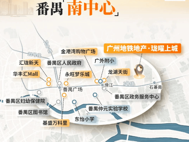 番禺广场:2站可达,集合了行政、交通、教育、医疗等多重功能。