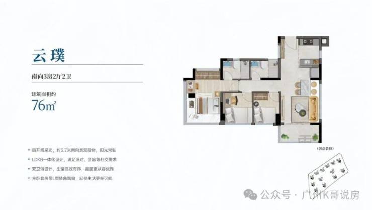 建面约76-142㎡三至五房,户户全南向享大面宽,三至五开间采光,高拓展灵动的户型,户型实用率均超100%,最高可达约115%