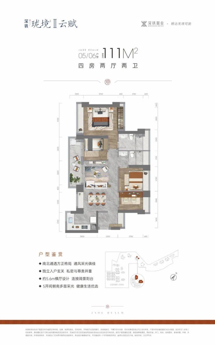 111㎡的4房2厅2卫,折后总价509-571万/套,单价4.61-5.15万/㎡。