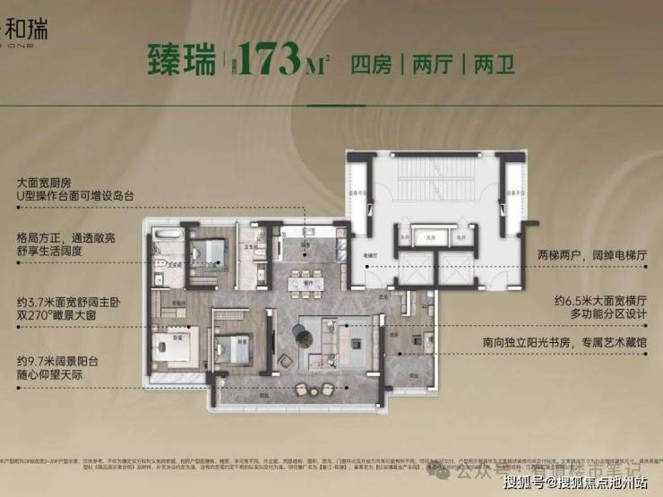 春江和瑞173户型:户型方正,整体上中规中矩,和竞品相比就是稍稍差点意思。只有2卫,另外3个项目全部为3卫设计,意味着都是双套房的配置。厨房设置在北面,采用大面宽,不是应该重点放在南向面宽的开发吗?书房带阳台,对需要的人来说绝对OK,但是但是呢?