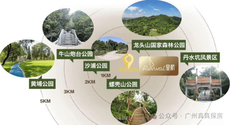 距离1 公里有龙头山森林公园及 2 公里有丹水坑风景区,近 6000 亩原生态绿地、距离 2 公里有 10KM 黄金珠江江岸线,占据城芯得天独厚自然资源,享受鲜氧与绿意,入则宁静,出则繁华。