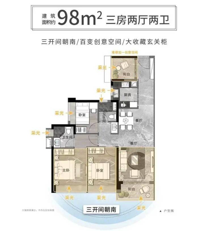 【高层户型鉴赏-超95%南向户型设计,高拓展高赠送】