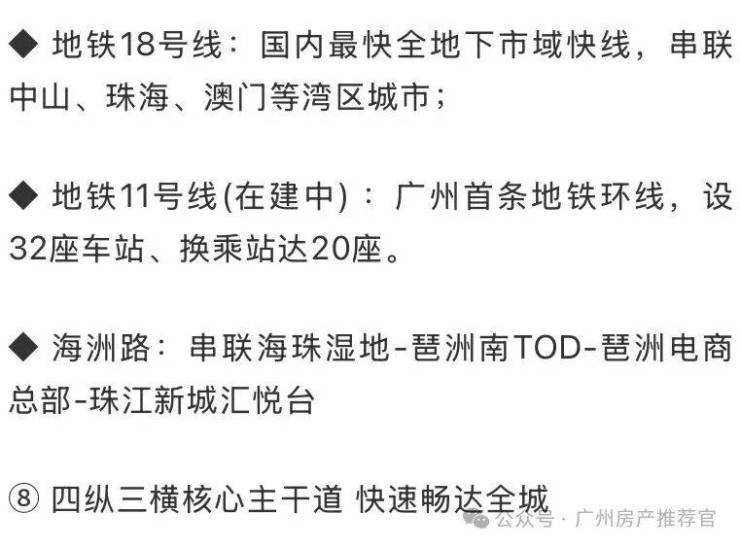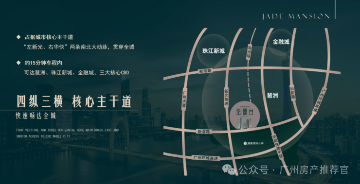 占据核心主干道,约15分钟车程内即可到达琶洲、珠江新城、国际金融城三大核心CBD。