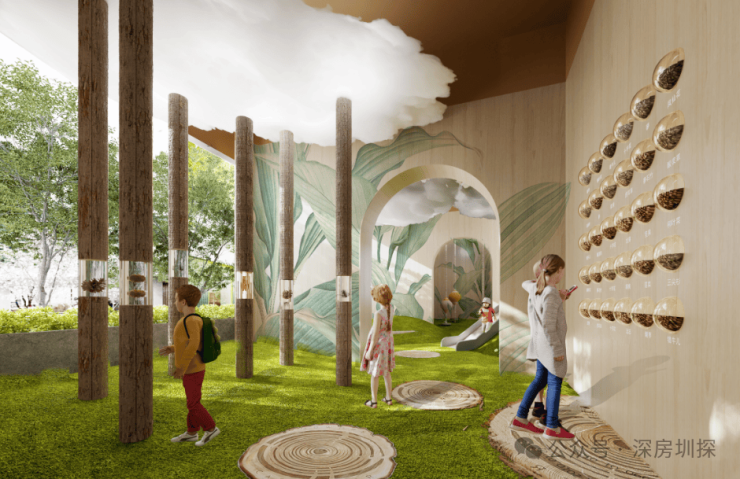 【童乐场地】:通过“儿童游乐场地、自然科普认知、家长看护”打造,为孩子们营造不插电的童年生活。