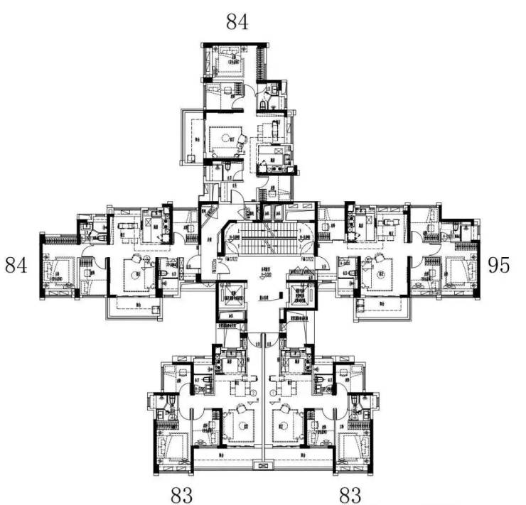主推建面约84-119平三至四房户型,作为最新报建组团,使用率实现100%,部分户型甚至能做到107%。