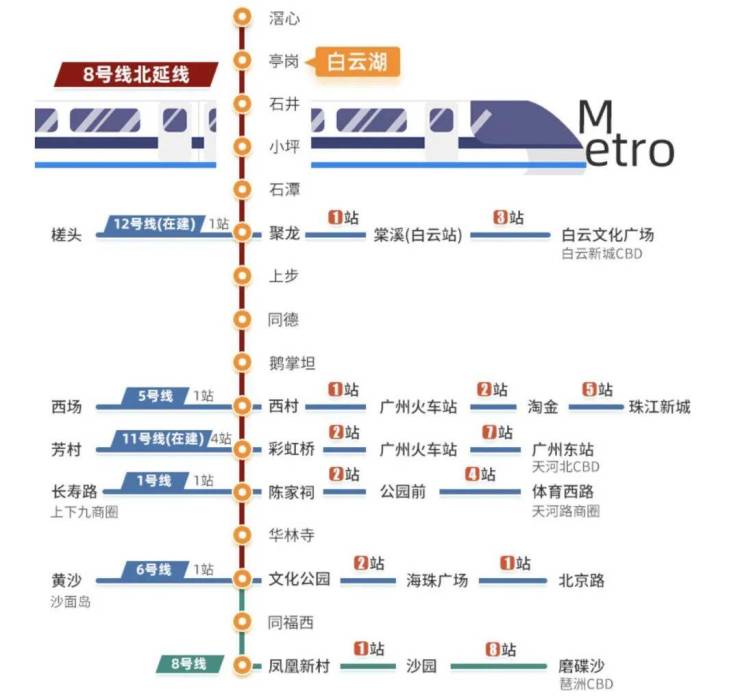 约100米地铁口:8号线亭岗站真·地铁上盖,换乘之王+文化长廊+科创聚集区,全线11个换乘站接驳13条地铁线,直达荔湾/琶洲。